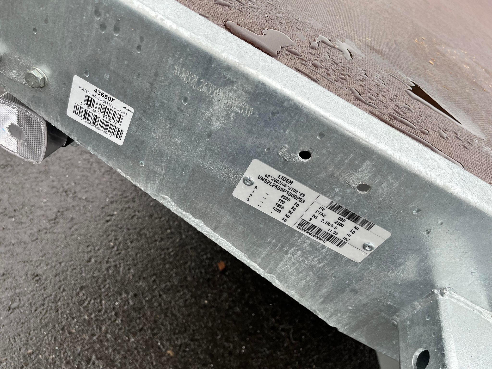 PTAC : 2500 kg – Version roues dessous 4m fixe